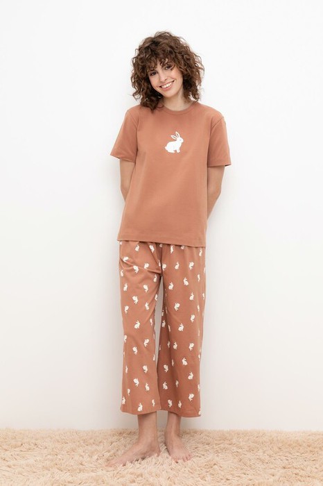 Very Neat пижама жен Е 20126/кофейный мусс,белые кролики