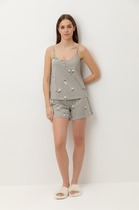 Комплект из высококачественного гребенного хлопка выполнен с вниманием к деталям. Регулируемые бретели позволяют подстроить их под ваши индивидуальные предпочтения, а комфортный пояс шорт обеспечивает свободу движений.