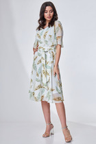 Легкое свободное платье с круглым вырезом на сборке, короткими рукавами из набивного трикотажа супрем.
