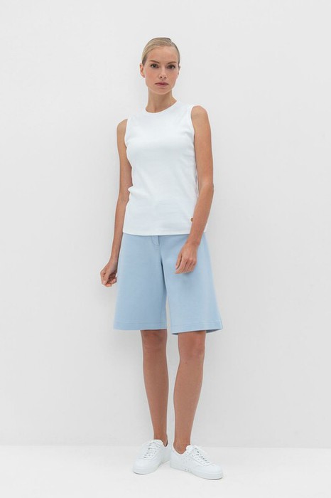 Удлиненные женские шорты с карманами из плотного трикотажа интерлок. Низ обработан плоскими швами.