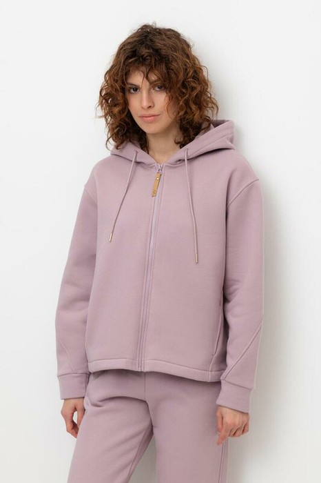 Тёплая трикотажная куртка на молнии с глубоким капюшоном. Произведена из мягкого трикотажного футер трёхнитки с начёсом. В составе 80% натурального хлопка и 20% полиэстера, при этом полиэстер ввязан внутрь по особой технологии и не соприкасается с кожей. В капюшоне мягкий подклад.