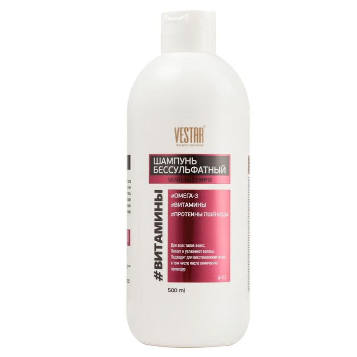 Шампунь содержит специально подобранный состав витаминов и комплекс ОМЕГА-3 для питания и восстановления волос.