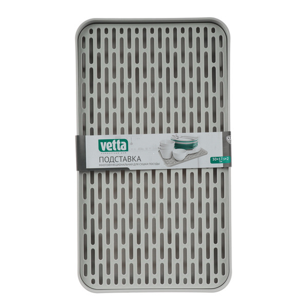 Подставка многофункциональная для сушки посуды VETTA 30х17,5х2 см поможет организовать пространство на кухне. Компактная подставка из пластика имеет лаконичный дизайн, который будет уместно смотреться в интерьере любой кухни. Ее можно установить как на столешницу, так и в шкаф для посуды. Имеет удобный поддон с устойчивыми нескользящими ножками. Вода быстро стекает сквозь отверстия, поэтому посуда становится сухой буквально за несколько минут. Изделие легко моется, не накапливает бактерии и запахи, обладает высокими гигиеническими свойствами.