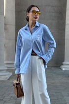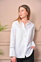 Укороченная блузка с пышными рукавами-фонариками выполнена из легкого хлопкового поплина. Супатная застежка на пуговицы из натурального перламутра. Внизу кулиса с лентами из основного полотна. В изделии будет комфортно, даже в самое жаркое время года. Подходит для любой фигуры. Сочетается в костюме с кюлотами D24.233 и юбкой D26.179