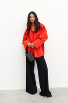 Блузка свободного кроя в стиле кимоно выполнена из плотного лиоцелла. Модель со спущенным плечом и застежкой на одну пуговицу. Ткань изделия отлично держит форму, плавно драпируется и не просвечивает. В теплое время года приятно охлаждает кожу. Добавление синтетических волокон в составе изделия, предотвращает сминаемостьи поддерживает формоустойчивость. Блузка сочетается в костюме с брюками D24.261, D24.265, D24.267, шортами D28.057 и  юбкой D24.261, а также очень эффектно с белыми шортами и джинсами.