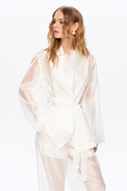Летящая блузка с отложным воротником выполнена из премиальной вискозы и лиоцелла. Мягкий фактурный материал струится по телу. Вискоза обеспечивает отличную воздухопроницаемость и поддерживает комфортный микроклимат. Модель дополнена пуговицами из натурального перламутра, на спинке изделия металлический логотип бренда. Отлично впишется в нестрогий офисный дресс-код или в расслабленном повседневном образе с джинсами и юбками.