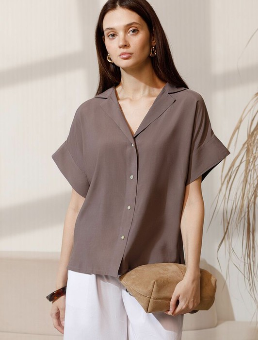 Vilatte Блузка с коротким рукавом из вискозы с лиоцеллом D29.347 кофейный