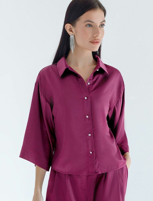 Vilatte Блузка с короткими рукавами из плотного струящегося сатина D29.280 бургу