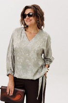 Блузка светло-оливкового цвета сочетает в себе комфорт и элегантность благодаря материалу из вискозы с лиоцеллом. Аккуратный отложной воротник подчеркивает утонченность образа, а продолговатые металлические пуговицы золотистого цвета добавляют выразительный акцент и придают блузке благородный вид. Широкие манжеты на рукавах привлекают внимание и делают силуэт современным. Спущенная линия плеча формирует расслабленный, но стильный внешний вид, что идеально для тех, кто ценит индивидуальность и уверенность в деталях. Крой продуман так, чтобы подчеркивать достоинства фигуры и на больших размерах, создавая гармоничный силуэт без лишних усилий. Ткань из вискозы с добавлением лиоцелла обеспечивает приятные ощущения и отличную посадку, струится на теле и охлаждает в жаркую погоду. Рубашка легко впишется как в деловой гардероб, так и в повседневный стиль, позволяя выглядеть безупречно независимо от ситуации.