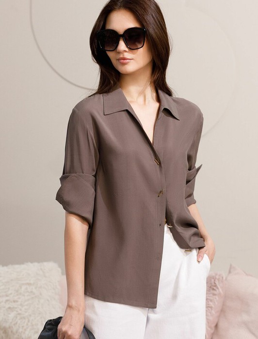 27.03 Vilatte Блузка с широкими манжетами из вискозы с лиоцеллом D29.346 кофейн