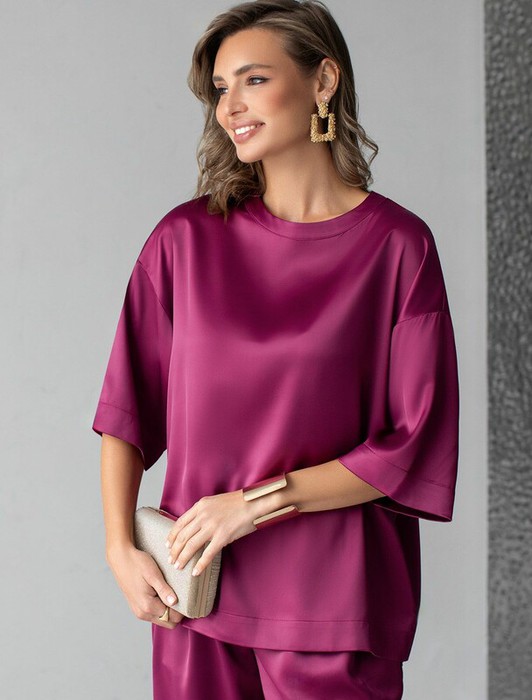 Совместные покупки Симферополь Женская одежда Блузки, рубашки — Vilatte Блузка свободная из струящегося плотного сатина D29.279 бургунди