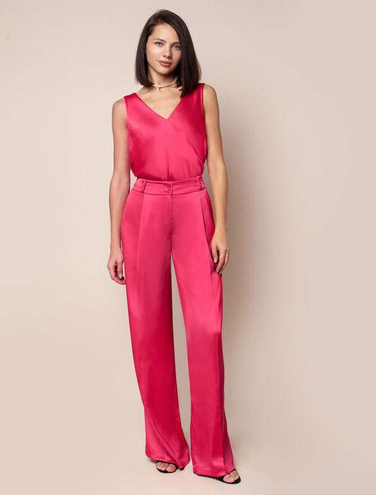 — Vilatte Брюки-палаццо из полуматового плотного сатина D24.534 viva magenta