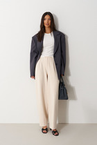 Брюки-палаццо выполнены из костюмной ткани. Свободная модель дополнена карманами и поясом на резинке сзади. Посадка на талии и заутюженные стрелки визуально удлиняют ноги и вытягивают силуэт. Идеальный вариант для офисного дресс кода или в повседневный классический стиль.