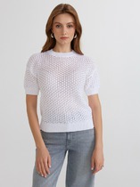 Джемпер фактурной вязки выполнен из хлопка с добавлением кашемира. Модель с V-вырезом с вывязанным орнаментом цепи. Мягкая и очень приятная пряжа совершенно не колется, сохраняет тепло при этом не перегревая, гарантируя безупречный комфорт.