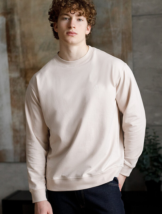 27.03 Vilatte Джемпер из премиального футера-двухнитки U49.046 бежевый