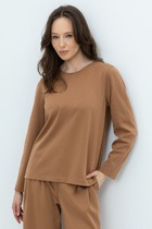 Джемпер с вырезом лодочкой и прозрачными рукавами создает женственный и элегантный образ. Тело джемпера черного цвета выполнено из плотного вискозного трикотажа, обеспечивающего комфорт, в то время как рукава из тонкой сетки создают стильный контраст. Глубокий вырез лодочка подчеркивает линию плеч и создает элегантный силуэт. Идеальный выбор для стильных образов!