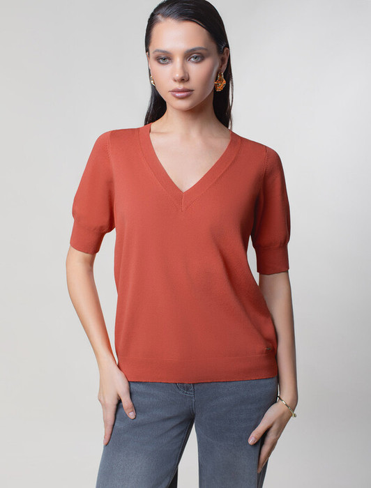 Vilatte Джемпер тонкой вязки из вискозы с нейлоном D39.355 терракотовый