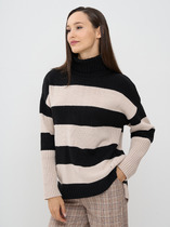 Джемпер тонкой вязки выполнен из вискозы с нейлоном. Модель с V-вырезом свободного силуэта. Мягкая очень приятная к коже пряжа не колется, хорошо держит форму и гарантирует комфорт во время носки в течение всего дня. Изделие дополнено фирменным металлическим логотипом бренда.