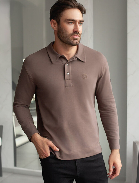 Стильный лонгслив черного цвета с воротником поло выполнен из премиального хлопка в сочетании с эластаном . Натуральная ткань обеспечивает легкость, воздухопроницаемость и приятные тактильные ощущения даже когда жарко, позволяет не перегреваться и поддерживает комфортный микроклимат в течение всего дня. Удобный отложной воротник на аккуратных пуговицах делает образ современным и стильным, а длинный рукав защищает руки при ветреной погоде. Поло хорошо садится по фигуре благодаря добавлению эластичных волокон — такой вариант подходит для мужчин любого роста и размеров, не стесняет движений и создает ощущение свободы и легкости.