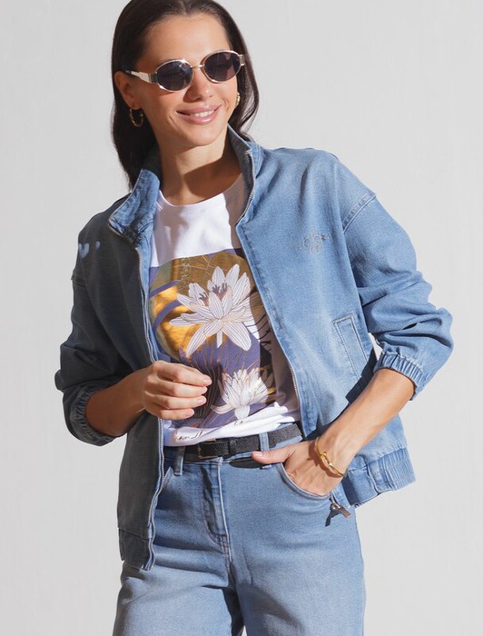 Свободный стильный бомбер светло-голубого цвета из облегченного денима плотностью 12,4 OZ оснащен прорезными карманами, которые добавляют практичности и удобства в повседневном использовании. Аккуратная резинка внизу изделия помогает сохранить форму и придает дополнительную защиту от ветра. Воротник-стойка создает современный и стильный образ. На груди расположена вышивка с логотипом бренда, которая подчеркивает индивидуальность изделия.Этот удобный джинсовый бомбер станет идеальным выбором для теплого сезона. Он отлично сочетается с разной одеждой и подходит для повседневного стиля.