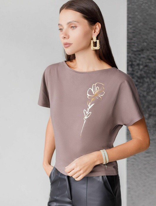 Совместные покупки Симферополь Женская одежда Футболки — 22.03 Vilatte Футболка D49.133 кофейный_цветок