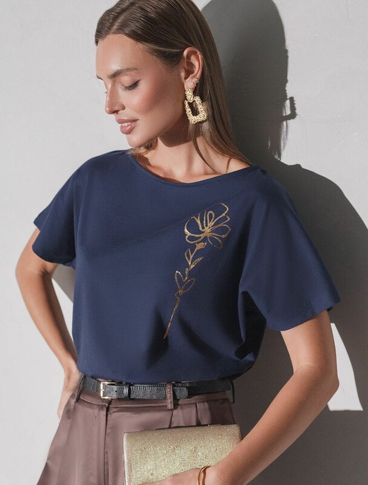 Совместные покупки Симферополь Женская одежда Футболки — Vilatte Футболка D49.133 т.синий_цветок
