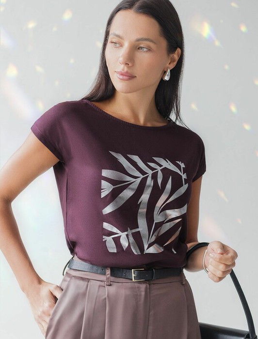22.03 Vilatte Футболка D49.134 бургунди_листики