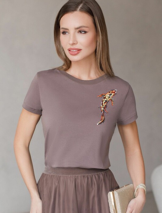 Совместные покупки Симферополь Женская одежда Футболки — Vilatte Футболка D49.135 кофейный_рыба