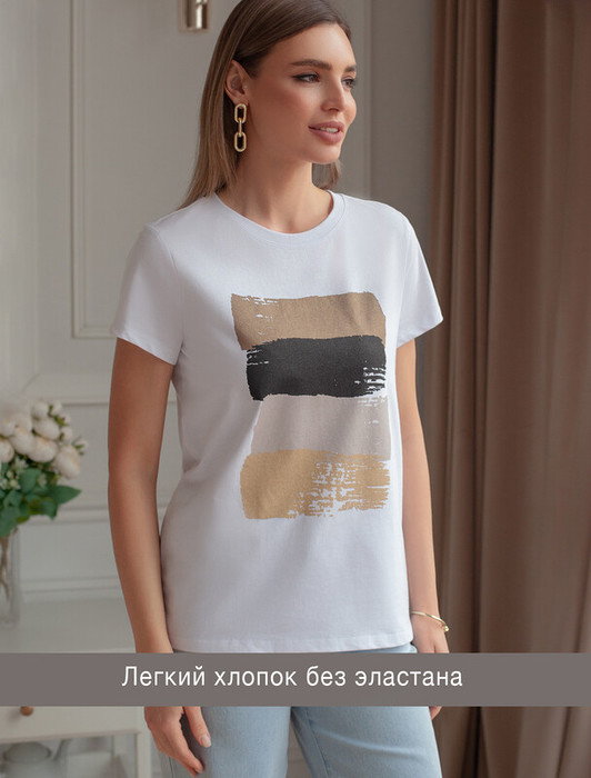 Совместные покупки Симферополь Женская одежда Футболки — 22.03 Vilatte Футболка из 100% хлопка с авторским принтом. D49.092 белый_art