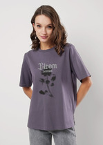 afound МОНКИ Футболка черная с букетом цветов.Черная с букетом фиолетовых цвет
