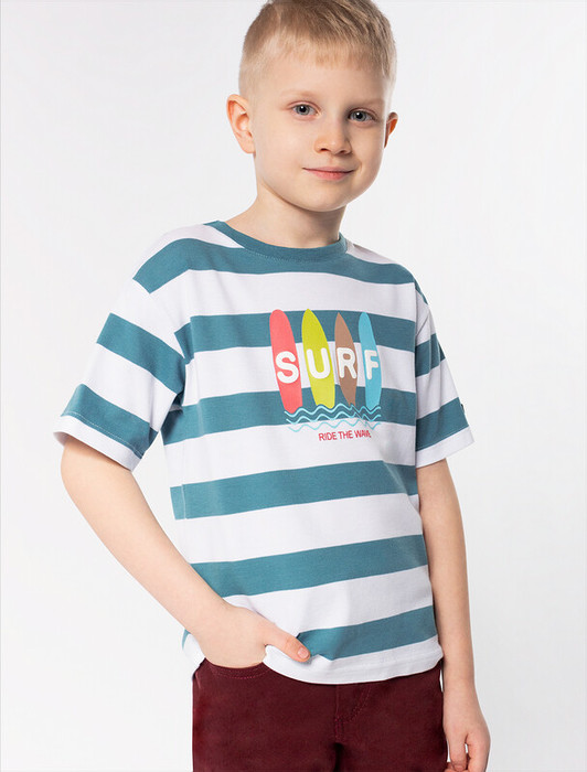 Совместные покупки Симферополь Детская одежда Футболки, майки — Vilatte Футболка из фактурного трикотажа с авторским принтом M49.407 морская_вол