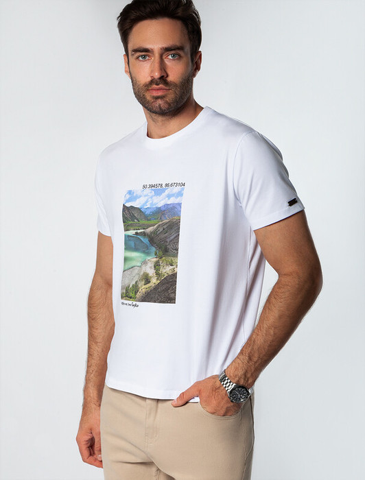 Vilatte Футболка из премиального хлопка с авторским принтом U49.026 белый_алтай