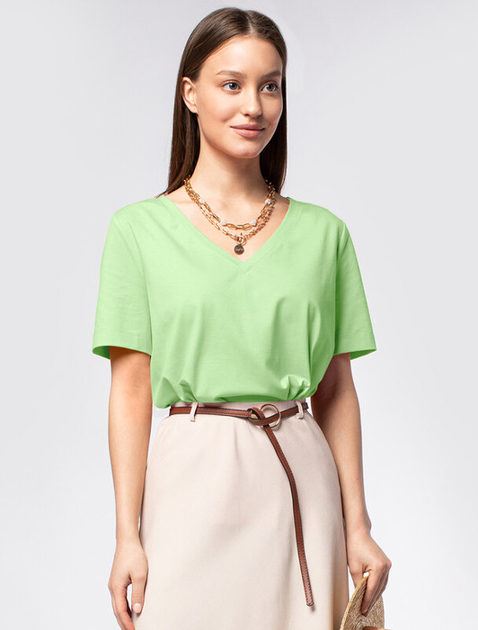 Совместные покупки Симферополь Женская одежда Футболки — Vilatte Футболка из премиального хлопка с эластаном D49.919 фисташковый