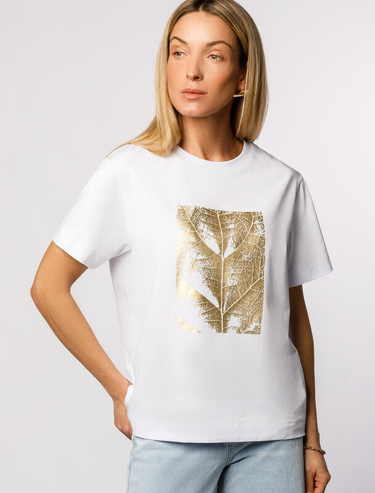 Vilatte Футболка из премиального хлопка с принтом фольгой D49.098 белый_листок