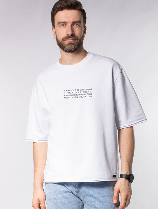 Футболка с трендовыми открытыми срезами выполнена из тонкого футера. Изделие урашено авторским принтом с устойчивым покрытием и логотипом бренда из эко-кожи. Мягкая хлопковая ткань очень приятная к коже, в которой будет комфортно на протяжении всего дня. Модель сочетается в костюме с шортами U48.001