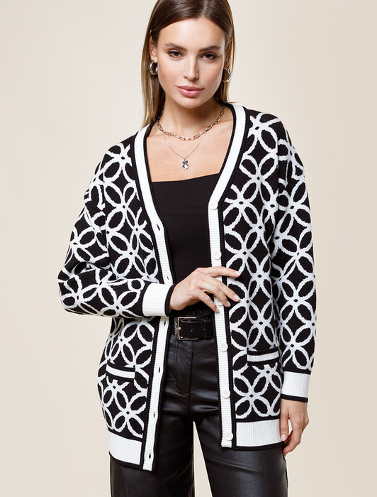 Совместные покупки Симферополь Женская одежда Кофты, кардиганы — 27.03 Vilatte Кардиган двуслойной жаккардовой вязки с кашемиром D31.130 черный-