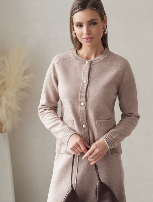 Кардиган выполнен из мягкой пряжи с добавлением кашемира. Модель прямого силуэта гармонично впишется в любой образ с брюками, юбками и джинсами. Застежка на пуговицы в жемчужно-золотистом оттенке. Изделие очень приятное к телу, совершенно не колется и отлично сохраняет тепло. Сочетается в костюме с брюками D38.013, D38.012 и юбкой D36.016