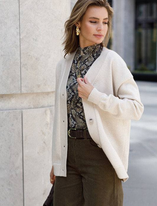 Совместные покупки Симферополь Женская одежда Кофты, кардиганы — Vilatte Кардиган из пряжи с кашемиром D31.147 овсяный меланж