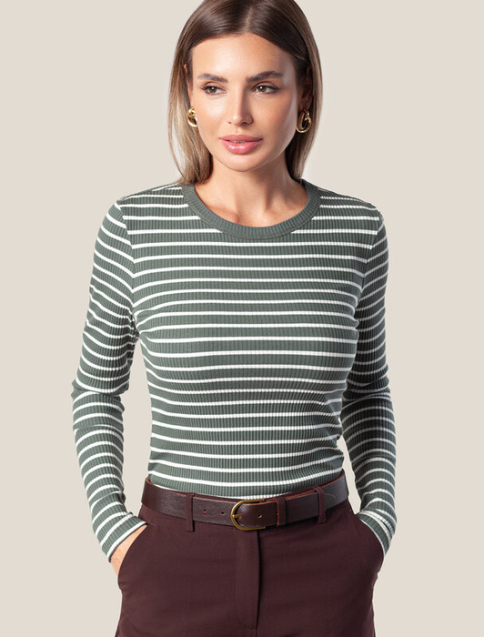 Заказать Vilatte Лонгслив из трикотажа в широкий рубчик D49.984 оливковый-белый