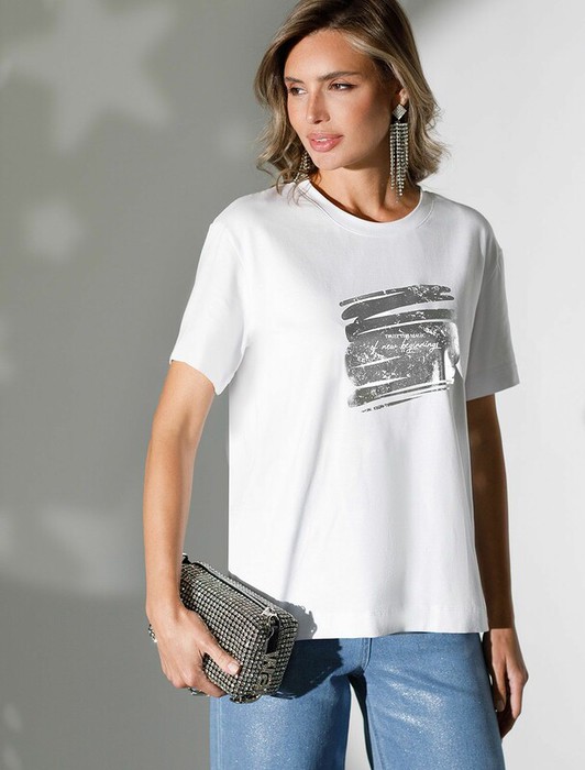 Совместные покупки Симферополь Женская одежда Футболки — 27.03 Vilatte Нарядная футболка с принтом фольгой из премиального хлопка с элас