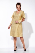 Платье с глубоким V-вырезом и рукавом «летучая мышь» выполнено из тончайших нитей плотного сатина, плетение которых создает полуматовый блеск, напоминающий натуральный шёлк. Модель с длинными глубокими вытачками спереди и сзади выглядит скульптурно, но за счет струящейся ткани сохраняется плавность силуэта. Ткань почти не мнется и имеет легкий вес. Комфортная длина ниже колена и застежка на молнию.