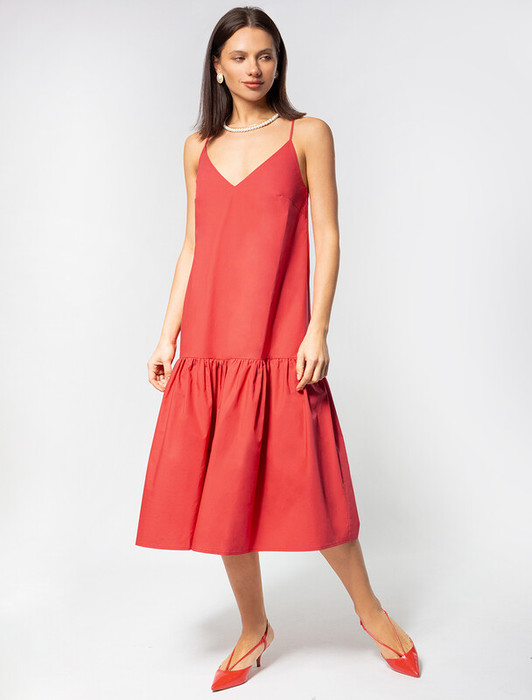 Совместные покупки Симферополь Женская одежда Платья — Vilatte Платье из поплина с регулируемыми бретелями D22.205 темно-коралловый