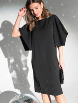 Элегантное платье прямого кроя черного цвета выполнено из воздушной сетчатой ткани с прозрачными рукавами, придающими образу лёгкую игривость. Мягкая вискозная подкладка обеспечивает комфорт, сохраняя при этом эффект полупрозрачности. Универсальный черный цвет делает платье идеальным для базового гардероба.