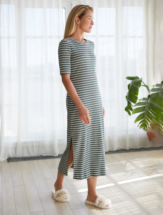 27.03 Vilatte Платье из трикотажа в широкий рубчик с разрезами D42.096 оливковы