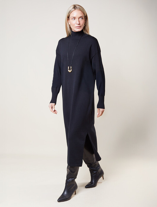 22.03 Vilatte Платье тонкой вязки из хлопка с нейлоном D32.106 черный
