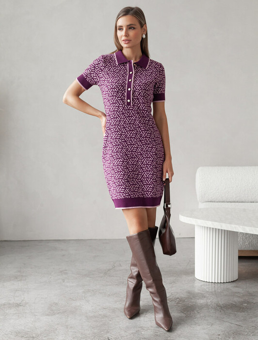 — 27.03 Vilatte Платье жаккардовой вязки с кашемиром D32.110 пурпурный