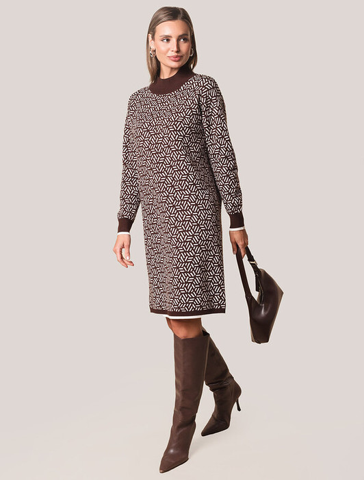 22.03 Vilatte Платье жаккардовой вязки с кашемиром D32.112 кофейный