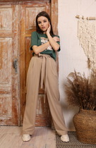 Прямые брюки выполнены из трикотажа джерси. Модель дополнена боковыми карманами и поясом на резинке сзади. Заутюженные стрелки визуально вытягивают силуэт. Изделие хорошо держит форму, отлично тянется и почти не мнется во время использования. Идеальный вариант в офис или в повседневный классический стиль.