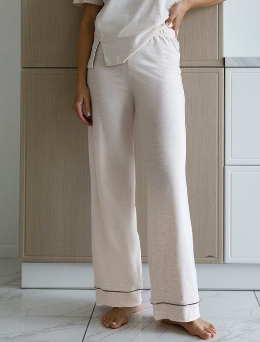 Совместные покупки Симферополь Женская одежда Домашняя одежда — Vilatte Прямые брюки из эластичного хлопка с контрастным кантом D44.120 бежевый