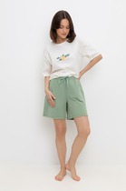 Шорты-бермуды выполнены из эластичной поливискозы. Свободная модель подходит для любой фигуры, скрывает недостатки и подчеркивает достоинства. Универсальные и трендовые шорты, которые хорошо сочетаются с любым верхом в гардеробе. Как деловой и преппи-стиль с лоферами, высокими сапогами, жилетом и водолазкой. С вязаным джемпером и кардиганом с блузкой, можно составить множество комплектов.